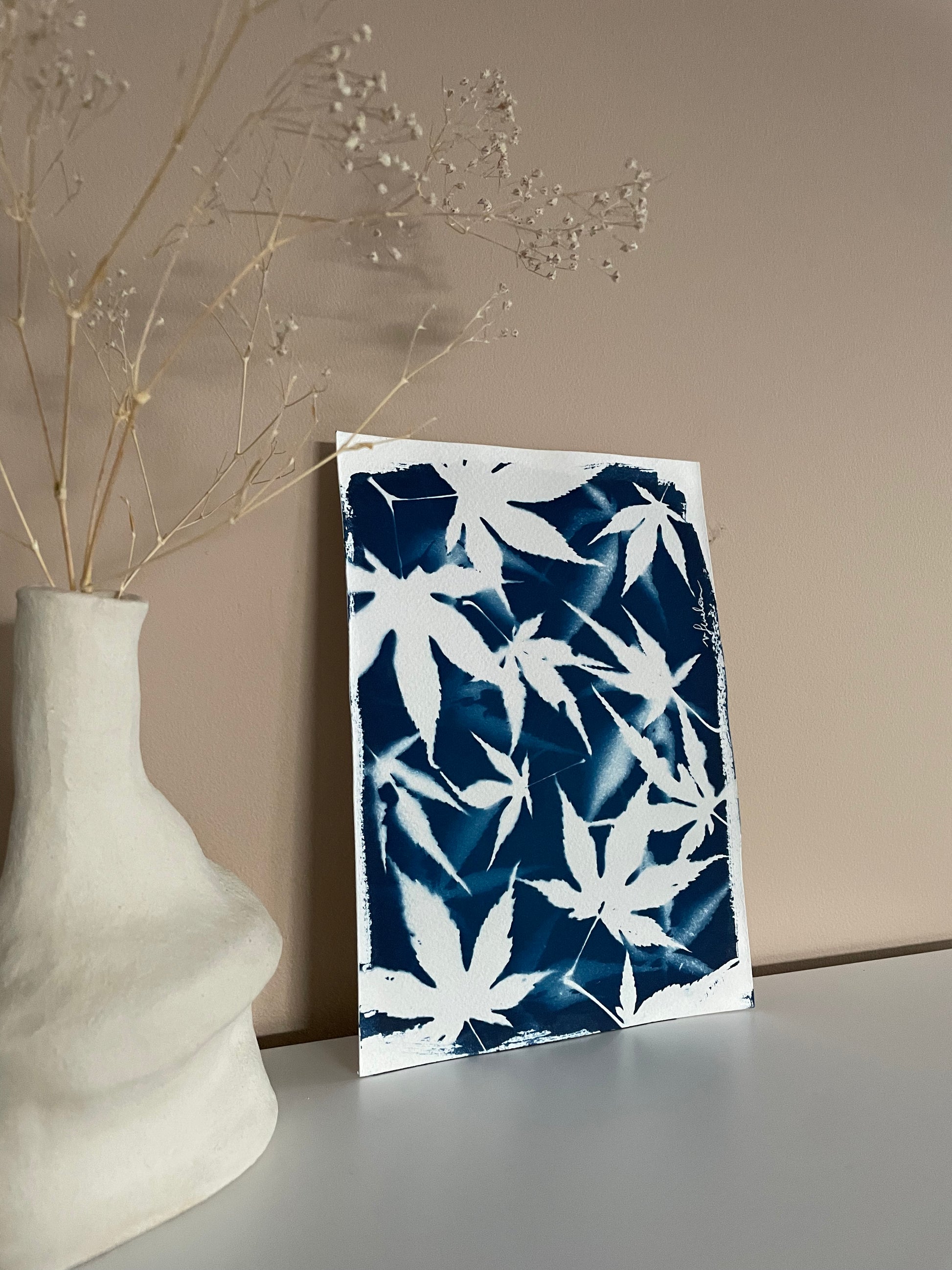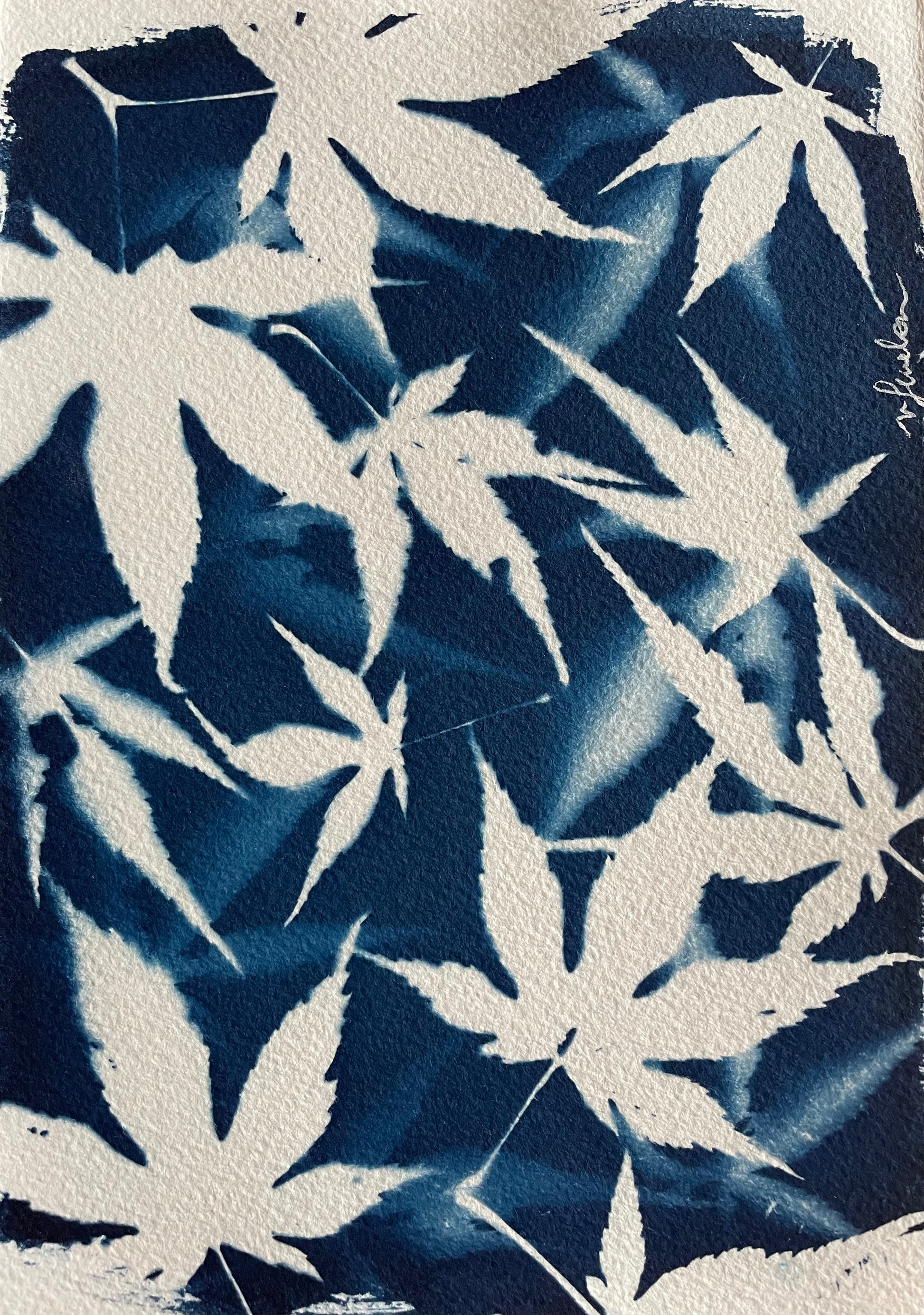 This cyanotype has been made with the leaves of my own maple tree from my garden 🍁